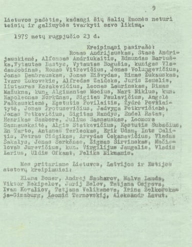 In 1979, Julius, together with 44 other people from the Baltic states, signed the “Baltic Appeal,” which was addressed to the Secretary-General of the United Nations and high-ranking officers of the Soviet Union and East and West Germany, demanding public disclosure of the Molotov-Ribbentrop Pact’s secret protocols and restoration of independence to the Baltic States. The appeal was published in the foreign press and even became the basis of a 1983 European Parliament resolution in support of its demands. To this day, Julius says “This was, perhaps, the most important piece of work we did.”