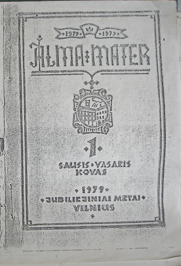 Povilas Pečeliūnas – a prominent Lithuanian dissident, teacher, and poet – illegally printed the magazine “Alma Mater” on the poor state of Lithuania’s higher education institutions and the realities of Soviet rule. The first issue was released in 1979, on the 400th anniversary of the establishment of Vilnius University, the university he himself graduated from in 1952.